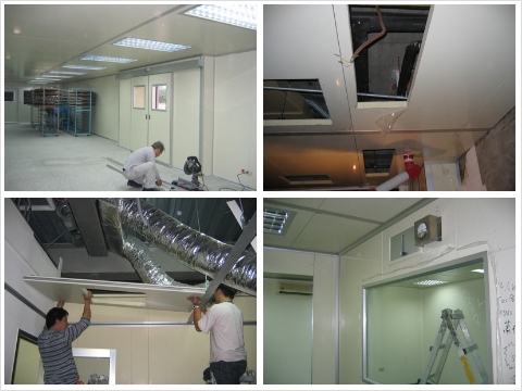 1)天花:潔淨區內用優良PU或紙蜂槽保溫庫板,無塵明亮, 顏色用灰白或米白,厚50mm;